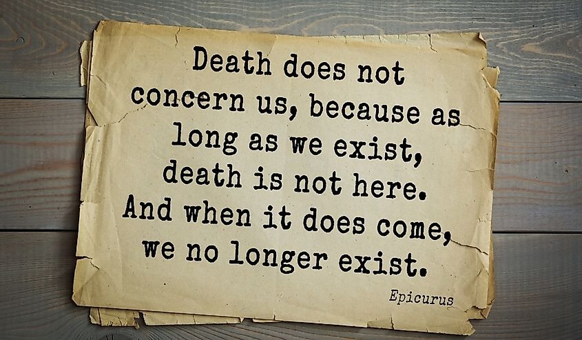 Epicureanism was an ancient Greek philosophy taught by Epicurus. In his teachings, Epicurus emphasized the goal of a content life in the present moment. He famously rejected the notion of an afterlife and did not believe in superstitious Gods. Epicurus believed there was no reason to fear death like many religions had taught and that people should not live their lives out of fear of future punishments. Epicurus was a man of science and had a materialistic view of the world. He did believe in a concept of the soul, but saw it as mortal, like the body.