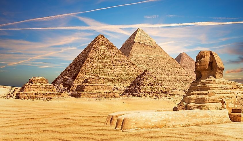 The Great Sphinx by the Great Pyramid of Giza, Egypt.
