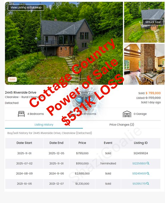 A cottage purchased at peak high prices in 2021 sold for a $531,000 loss in Ontario.