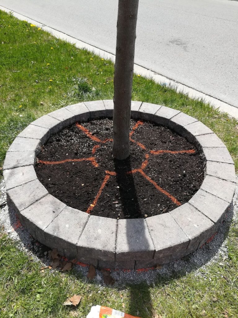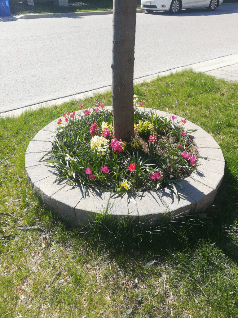 In May last year, our construction union failed to reach an agreement with the employer over wages and therefore went on strike for two weeks. I had nothing to do at home, so I thought that the tree in front of my door needed a beautiful flower bed, so I took this opportunity to complete it.