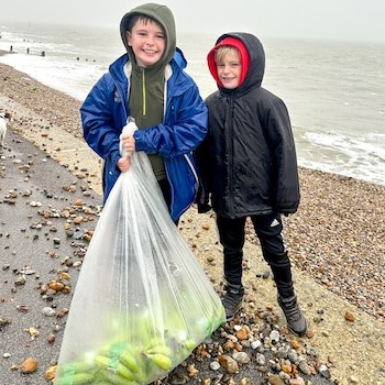 Children helped collect the washed up bananas on Selsey Beach in West Sussex Credit: Harry Emmence/Solent News