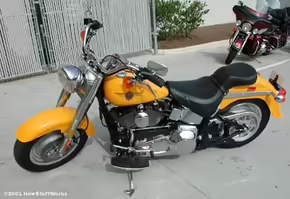 This Harley-Davidson Softail has a swingarm rear suspension.