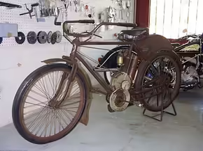 It didn’t take long for someone to take the user-friendly safety bicycle design and strap on an internal combustion engine. The first to do so successfully was Gottlieb Daimler, who is credited with building the first motorized bicycle — or motorcycle — in 1885. Daimler’s motorcycle included a single-cylinder Otto-cycle engine mounted vertically in the center of the machine. It also had one wheel in front, one wheel in back and a spring-loaded outrigger wheel on each side for added stability. Its chassis consisted of a wooden frame and wheels with wood spokes and iron rims. Such designs were called “boneshakers” because of the rough, jarring ride they delivered.