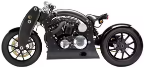Although the basic design of the motorcycle remains the same, motorcycle engineering continues to enjoy innovation and gradual evolution. Consider the two vehicles shown below. The B91 Wraith from Confederate Motor Company is a $50,000 motorcycle with a carbon-fiber frame and a molded carbon-fiber fuel container placed under the engine. The Dodge’s Tomahawk is not even a motorcycle in the strictest definition. To handle the massive V10 Viper engine, Tomahawk designers had to add two more wheels. They also had to move the gas tank to the front fender to shield it from the engine’s heat.