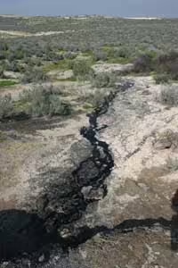 Petroleum rises naturally to the surface at this tar seep in central California.