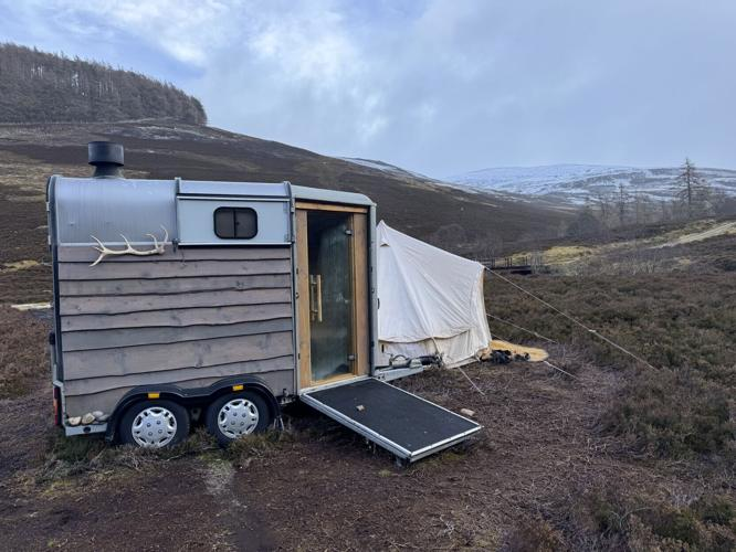 Wild Braemar’s wood-burning sauna, converted from an old horse trailer.