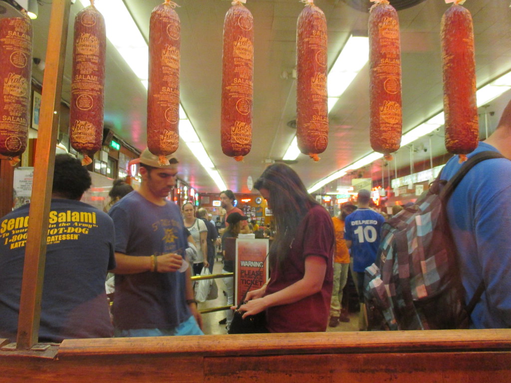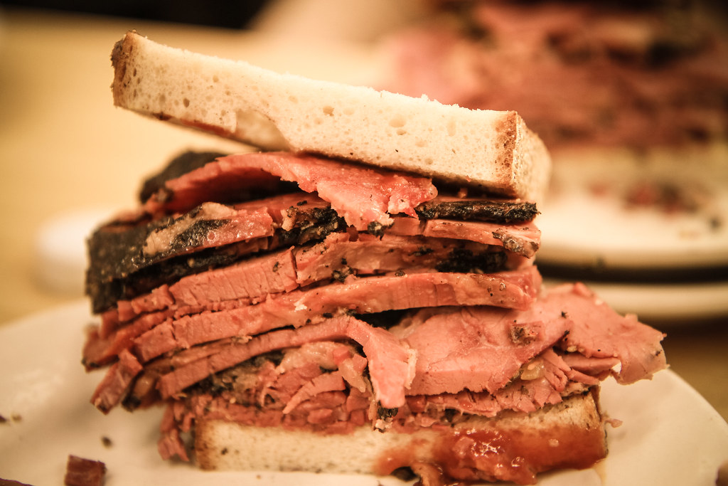 In 1888, The Icelandic brothers opened a small deli called “Iceland Brothers” on Ludlow Street in New York’s Lower East Side. In 1903, Willy Katz joined, and the shop was officially renamed “Iceland & Katz.” In 1910, Willy’s cousin, Benny, joined, buying out the Icelandic brothers’ shares and formally establishing Katz’s Delicatessen. In April 1917, their fellow countryman, Harry Tarowsky, also joined the partnership. During subway construction, Katz’s Delicatessen moved across the street to its current location. This vacant lot on Houston Street (pronounced “House-ton,” after a Dutch immigrant of the same name) was piled high with barrels of meat and pickles before the current store was added between 1946 and 1949.