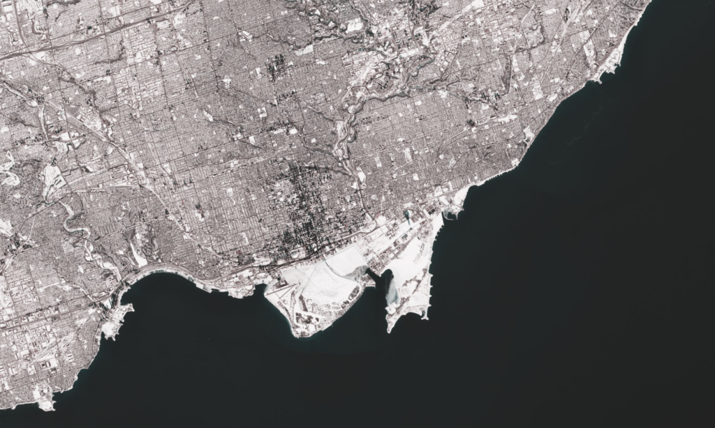 Feb. 4: Toronto, days after record-breaking snowfall.Satellite image by Copernicus