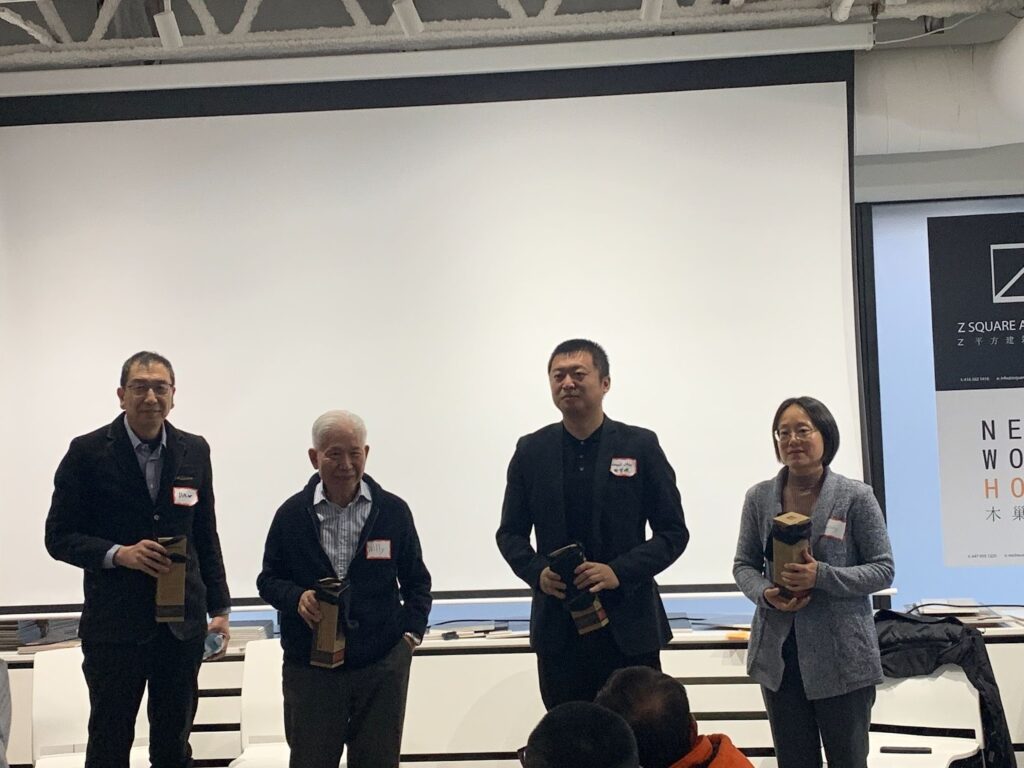 As dusk fell and the light rain pattered down, the report drew to a close. Finally, by the organizers: The Canadian Chinese Civil Engineers Association presented souvenirs to the four guests on stage.