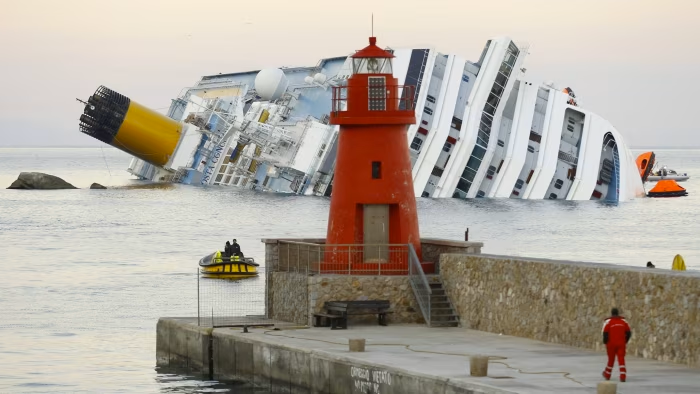 The Costa Concordia cruise ship ran aground off the west coast of Italy in 2012. The captain later claimed to have accidentally ‘fallen’ into a lifeboat and departed the stricken vessel © Giampiero Sposito/Reuters