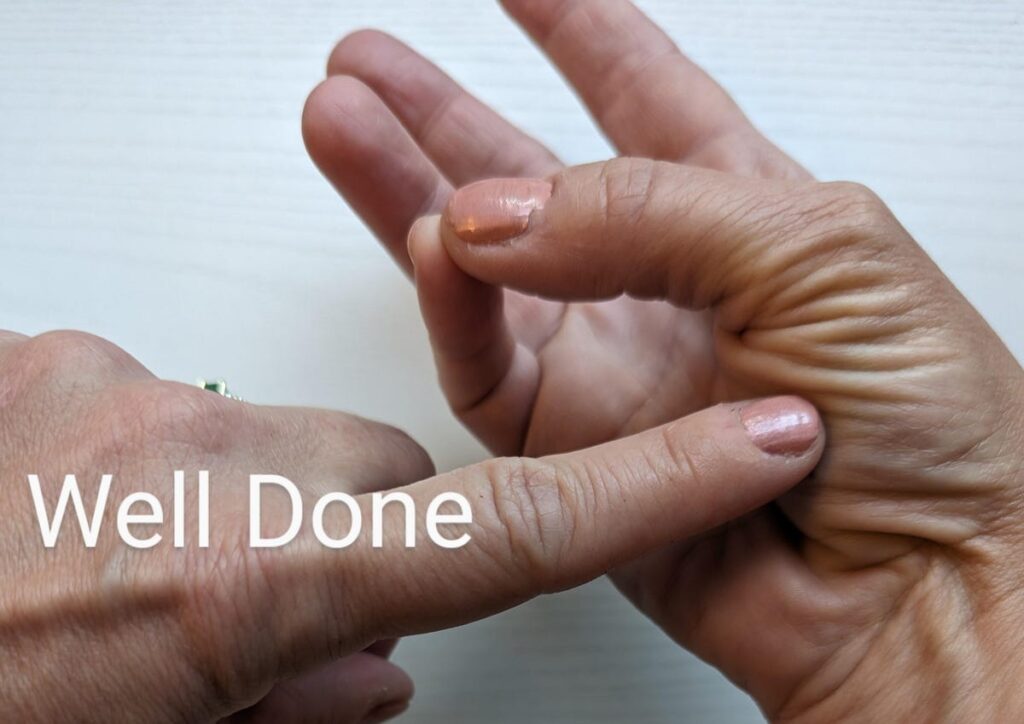 Here it is: With one hand, gently touch your thumb and forefinger together, keeping the rest of your fingers relaxed, in a half-assed “A-OK” signal. You don’t want to press your thumb and forefinger together — simply make light contact between them. With the forefinger of your opposite hand gently poke the fleshy base of your thumb.