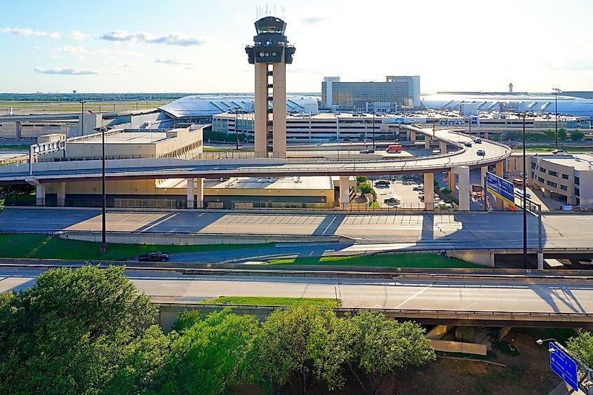 View of the control tower at the Dallas Fort Worth International Airport (DFW). Editorial credit: EQRoy / Shutterstock.com