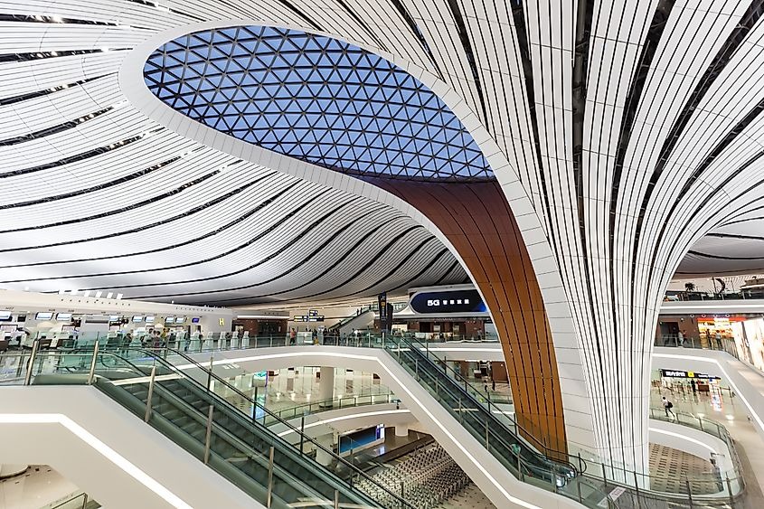 Beijing Daxing New International Airport Terminal (PKX) in China, via Markus Mainka / Shutterstock.com