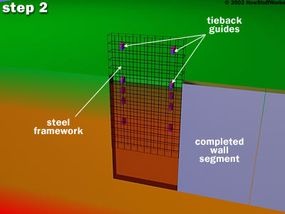 To keep the walls in place while they built up the foundation, the crew had to run underground tiebacks, cables extending from the perimeter walls to rock surrounding the bathtub. This provided temporary support until the crew could finish a support structure inside the bathtub.